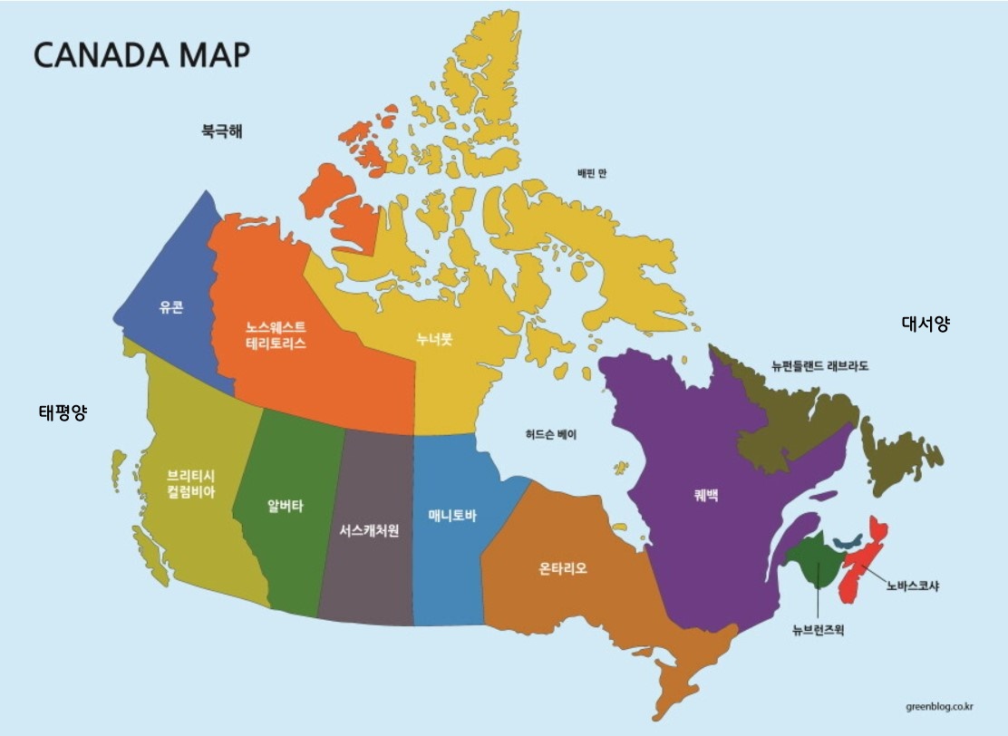 오늘은 캐나다 지도와 지역 : 주와 준주에 간단히 대해서 알아보았습니다.
